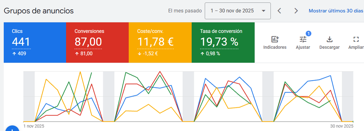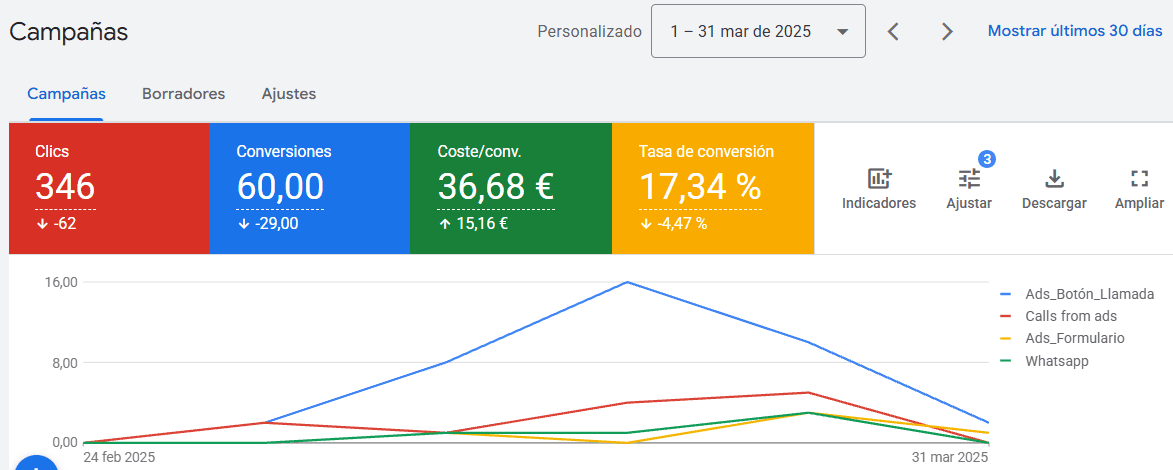 A continuación verás gráficos de nuestras campañas de Google Ads para abogados.